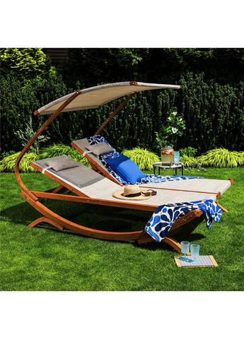 Садовий шезлонг Di Volio Pionza двомісний Уявіть собі ідеальне місце для відпочинку: тінь, м'яке погойдування, тиша навколо - і ви, загорнуті в зручність і стиль. Садовий шезлонг Pionza - ідеальне рішення для всіх, хто цінує комфорт та стиль. Завдяки каркасу з міцної модрини та ретельно підібраним матеріалам, цей двомісний шезлонг не тільки чудово виглядає, але й забезпечує винятковий комфорт використання. Саме так відчувається релакс на двомісному садовому шезлонгу Di Volio Pionza. Цей витончений, але надзвичайно міцний шезлонг створений для того, щоб кожна хвилина на терасі, біля басейну або в саду дарувала максимум задоволення. Створений для двох, але з персональним налаштуванням для кожного - шезлонг для двох дарує не просто відпочинок, а індивідуальний комфорт у тандемі з природою. Основні характеристики Модель: DV-106SL Колір: бежевий Матеріал виготовлення: Деревина модрини, Теслін Кількість місць: 2 особи Регулювання: 3 рівні Максимальне навантаження: 280кг Загальні розміри: довжина 213см / ширина 154см / висота 156-182см Розміри дашка: довжина 143см / ширина 124см / висота 4см Висота сидіння від поверхні: 42см Висота спинки від сидіння: 89см Довжина: 204см Ширина сидіння: 65см Розміри подушки: 44см / 18см Товщина подушки: 8см Висота спинки від поверхні: 42см / 74см / 94см / 104см Вага: 51,5кг Гарантія: 24 місяці Максимальний відпочинок у вашому саду Шезлонг Di Volio Pionza - це справжній синонім безтурботного релаксу. Він розроблений для того, щоб дарувати вам максимальний комфорт просто неба - у саду, на просторій терасі чи біля домашнього басейну. Завдяки великій двомісній конструкції кожен користувач отримує достатньо простору, а незалежне регулювання спинок дозволяє налаштовувати положення саме під свої потреби: можна насолоджуватися читанням, розмовами чи солодким відпочинком під сонячним промінням. Каркас шезлонга, виготовлений із міцної модрини, витримує до 280кг навантаження, гарантуючи повну стійкість навіть під час спільного відпочинку. Продумані пропорції, зручна висота сидіння та м'які подушки для голови роблять Pionza ідеальним місцем для того, щоб розслабитися на повну - наодинці або в компанії близької людини. Це не просто меблі - це ваш персональний куточок спокою. Практичний капюшон та комфорт для двох Найбільша перевага шезлонга Pionza - це те, що він створений для максимального комфорту двох людей, але з можливістю індивідуального налаштування. Кожен із двох незалежних шезлонгів має власне 3-рівневе регулювання спинки, тож ви можете розташуватися саме так, як вам зручно: сидіти з книгою, напівлежати для розмови або повністю розкластися для денного сну. Особливу роль у зручності грає рухомий тент-капюшон, який майже повністю обертається навколо шезлонга. Завдяки цьому вам більше не потрібно пересувати важку конструкцію, щоб знайти тінь - достатньо просто змінити положення тенту, підлаштовуючи його під сонячне світло. Комплект доповнюють м'які подушки для голови, наповнені перламутровою бавовною, які завдяки еластичним стрічкам надійно тримаються на своєму місці. А для прохолодних вечорів додається затишний плед, щоб ви могли насолоджуватися теплом і затишком навіть після заходу сонця Комфортний відпочинок для двох Садовий шезлонг Di Volio Pionza створений спеціально для того, щоб дарувати подвійне задоволення від відпочинку. Його широка двомісна конструкція дозво