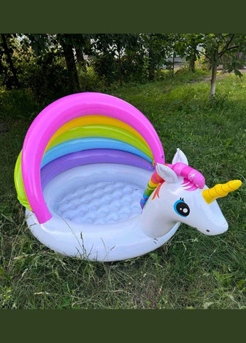 У спеку будь-яке маля прагне поплескатися у воді. Щоб батьки змогли здійснити це бажання, пропонується надувний дитячий басейн "Єдиноріг". Він має барвистий дизайн, який приверне увагу малюка та басейн перетвориться на улюблене місце ігор. А його особливе забарвлення одразу викликає захоплення у дитини. Такий надувний басейн обов'язково стане окрасою будь-якої території. Завдяки унікальному оформленню басейн буде ще й гідним захистом для малюка від променів сонця. Для зручності дана модель йде з надувним дном і дитині було м'яко і тепло сидіти. Дитячий басейн виготовлений із якісного вінілу. Даний варіант басейну легко використовується вдома як манеж. Характеристики Довжина 127 см Ширіна 102 см Висота 69 см Інформація (ДxШxВ) 127 x 102 x 69см Вага 1.8 кг Вік дитини від 1 до 3 років Гарантія не передбачено Дно надувне Матеріал високоякісний вініл Насос купується окремо Об'єм води 45 л Виробник Intex Серія Unicorn baby pool Країна - виробник Китай Тент Є Тип басейну класичний басейн Товщина матеріалу 0,25 мм Паковання картонна коробка Форма круглий Колір білий