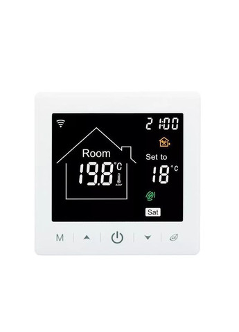 Терморегулятор М2 з Wi-Fi – це пристрій інтелектуального керування системою електричного опалення теплою підлогою. Терморегулятор останнього покоління оснащений функцією віддаленого керування через Wi-Fi. Це означає, що користувач може змінювати налаштування або задавати температурний режим за допомогою смартфона з будь-якої точки, де є доступ до Інтернету.Керувати температурою в приміщенні можна за допомогою програми TUYA або Smart Life та аналогічною програмою.Цей терморегулятор можна застосовувати в системі "Розумний дім"М2 - програмований терморегулятор, який використовується для керування електричними підлогами всіх типів: кабельними, плівковими, алюмінієвими матами і т.д. Регулятор розрахований на навантаження 3200 Вт (16 А), що еквівалентно ~15-20 м2 теплої підлоги.У комплекті з регулятором поставляється виносний температурний датчик завдовжки 3 метри. Номінал термодатчика – 10 кОм при 25°С. Датчик монтується безпосередньо в підлогу в гофротрубку 9/12, яка в комплект до терморегулятора не входить.Терморегулятор для теплої підлоги М2 призначений для автоматичного регулювання температури в приміщеннях, обладнаних системами електричного або водяного опалення з використанням датчика температури підлоги та вбудованого датчика температури повітря (на лицьовій панелі).Можна вибрати регулювання температури як за температурою в кімнаті, або вибрати регулювання температури підлоги.Особливістю терморегулятора М2 є можливість регулювати як за температурою підлоги, так і за температурою в кімнаті (наприклад, температуру в кімнаті 22 градуси і температура підлоги 30 градусів) Можна налаштувати температуру, яка буде найбільш комфортною для Вас.Терморегулятор М2 має великий інформативний рідкокристалічний екран, на який виводиться вся необхідна інформація.Терморегулятор управляється системою «тепла підлога», включаючи її у зручний для Вас час у різні дні тижня, і дозволяє задати 6 режимів роботи протягом дня з різною температурою. Можливість регулювання по днях тижня можна вибрати 5 робочих та 2 вихідні дні, 6 робочих та 1 вихідний, або однаковий графік роботи на всі 7 днів. Також можна вибрати "ручний" або "комфортний" режим.Ви можете використовувати стандартні заводські установки або налаштувати терморегулятор на індивідуальний режим роботи.Програмований терморегулятор передбачає налаштування до 6 періодів обігріву на добу окремо кожного дня тижня. Така оптимізація опалення дозволяє не лише забезпечувати високий рівень кліматичного комфорту, а й заощаджувати 30-50% електроенергії. Усі налаштування та статистика енергоспоживання зберігаються у хмарі, що унеможливлює втрату даних при відключенні електроенергії.Переваги:Завдяки сучасному дизайну - легко впишеться в будь-який інтер'єр.Незамінний елемент розумного будинкуУправління за допомогою смартфона з будь-якої точки світу, де є інтернет.Русифіковане додаток для управління на смартфоні.Одночасне управління групою термостатів.Термостатам і групам термостатів можна привласнювати унікальні назви, наприклад - кухня, спальня і т.д.Захист від замерзання і перегріву.Управління через датчик температури повітря або температури підлоги.Програмування на 7 днів в тиждень і 4 тимчасових відрізка в день.Створення Smart Scene - одночасне програмування декількох пристроїв під певні умови.Реко