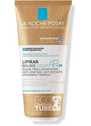 Ліпідовідновлювальний легкий бальзам для догляду за сухою, дуже сухою та схильною до атопії шкірою обличчя та тіла дорослих від бренду La Roche-Posay — гарант довготривалого комфорту та свіжості. Ефективна формула, що поєднує технологію AP+M та висококонцентровану термальну воду, швидко бореться з подразненнями та зменшує свербіж. Живильне масло ши та інші компоненти піклуються про здорову мікрофлору та гідроліпідну мантію, зменшуючи втрату вологи, що є причиною сухості. Особливості La Roche-Posay Lipikar Baume Light AP+M: – має довготривалий ефект, що запобігає рецидивам атопічного дерматиту;– надає миттєву заспокійливу дію, зменшуючи свербіж;– відновлює та зміцнює бар’єрні функції епідермісу;– не створює липкого чи жирного фінішу;– відновлює баланс мікробіоти шкіри;– захищає від подряпин;– делікатна формула без запаху;– забезпечує відчуття прохолодної свіжості;– надлегка консистенція швидко поглинається;– eco-friendly пакування, що містить на 60% менше пластику порівняно з попереднім дизайном.