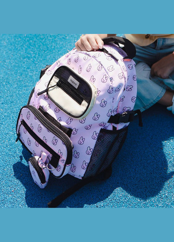 Duo — набір з рюкзака, бананки та маленького гаманця для активних дітлахів, які люблять комфорт і завжди готові до дії. Рюкзак має одне велике відділення для речей та додатково внутрішню кишеню для надійної фіксації ґаджета. Ззовні з обох боків є відсіки для пляшки з водою чи термоса, а спереду — кишеня для дрібниць і бананка, яка кріпиться до рюкзака за допомогою липучки. Спинка виробу добре прилягає до тіла та має ортопедичні властивості для зручного носіння та турботи про поставу. Бананка компактна, але достатньо містка, має основне відділення для зберігання телефона, ключів і невелику кишеню спереду. Вона оснащена ременем, який легко регулюється, і надійними застібками. Аксесуар можна використовувати як у комплекті з рюкзаком, так і окремо. Набір виготовлений із якісного матеріалу Оксфорд 600, який володіє гарними вентиляційними та водовідштовхувальними властивостями. Крім того, ця тканина проста в догляді та не втрачає колір на сонці — вироби з неї можна прати в машинці на делікатному режимі.