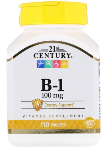 Вітамінна добавка Стимулює вироблення енергії Вітамін B - 1 (тіамін) необхідний для метаболізму вуглеводів, деяких видів амінокислот і алкоголю. Його присутність також необхідно в процесах вироблення нейромедіатора ацетилхоліну і виведення з організму алкоголю і молочної кислоти (побічного продукту активних фізичних навантажень). Тіамін відіграє важливу роль у виробленні енергії і АТФ, що вивільняються в результаті реакцій циклу Кребса. Дієта з високим вмістом вуглеводів, активні фізичні навантаження і хронічне вживання алкоголю можуть привести до підвищення фізіологічної потреби у вітаміні B-1. Рекомендації по Застосуванню 1 таблетка в день. Інші Інгредієнти Двоосновний фосфат кальцію, стеаринова кислота, модифікована целюлозна камедь і діоксид кремнію. Попередження Примітка: Якщо ви вагітні, плануєте завагітніти або годуєте грудьми, перед використанням цього продукту проконсультуйтеся зі своїм лікарем. Не використовувати, якщо герметична мембрана пошкоджена або відсутня. Зберігати в місцях, недоступних для дітей.