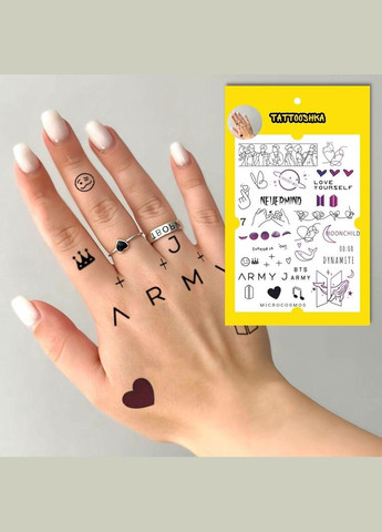 Набір «Космос» містить: чорні тимчасові перекладні тату 9,5*5,5 см - 4 шт. Розмір кожного аркуша: 9,5 на 5,5 см. Легко та швидко наносити. Безпечні. Тримаються на тілі 3-10 днів. Інструкція з використання: Шкіра має бути повністю чистою і сухою. Виріжте малюнок на свій вибір, зніміть прозорий шар паперу. Розмістіть татуювання обличчям вниз на шкіру. Притисніть малюнок щільно вологою ганчіркою або губкою протягом 10-20 секунд. Обережно підніміть кут тату, щоб перевірити перенесення малюнка. Якщо ні, то знову притисніть вологою губкою. Після видалення паперу, зачекайте кілька хвилин, а потім обережно промийте водою. Просушіть татуювання. Якщо обережно ставиться, ваше тату протримається кілька днів. Для видалення використовуйте крем або дитяче масло. Спирт видалить татуювання миттєво. Не рекомендується дітям до 3 років! Увага: не наносити на чутливу шкіру, біля очей або при алергічних реакціях.