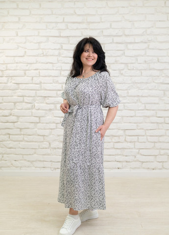 Довга сукня з теракотового бавовняного штапелю з розкльошеним низом, декорованим переднім розрізом. Модель з кишенями, коміром та рукавами короткої довжини. Сукня з гумкою на талії та вирізом у горловини комплектується знімним поясом. Напівобхват: Груди: S (46), M (48), L (50), XL (52), Талія: S (33-45), M (35-47), L (37-49), XL (39-51), Стегна: S (57), M (59), L (61), XL (63), Довжина виробу - 145, Рукав - 23, Тканина: Низької еластичності. Парметри моделі: Зріст: 168 см Груди: 90 см Талія: 63 см Стегна: 90 см На моделі розмір: S