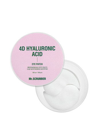 Патчі для зволоження шкіри навколо очей Mr. Scrubber 4D Hyaluronic Acid з 4D гіалуроновою кислотою тканинні Гіалуронові патчі допоможуть вам за 15 хвилин освіжити шкіру навколо очей, зроблять її гладкішою, м'якшою. Засіб для догляду за століттями миттєво насичує ніжну шкіру вологою, заспокоює, візуально згладжує зморшки, зокрема мімічні, покращує колір і текстуру епідермісу. Якщо потрібно, ви можете використовувати патчі щодня. Як працюють активні компоненти зволожувальних патчів для очей: 4D гіалуронова кислота — утворює тривимірну сітку на шкірі для утримання молекул води, запобігає втраті вологи, відновлює та зміцнює природний бар'єр дерми, захищає від негативного впливу довкілля.; гліцерин — зволожує, зміцнює захисний бар'єр шкіри, зменшує подразнення й почервоніння; оливкова олія — живить, насичує вологою й пом'якшує епідерміс. Ефект від застосування патчів для зволоження шкіри навколо очей: гладкіший шкірний покрив; свіжий, відпочилий погляд; покращення текстури та тону шкірного покриву; згладження зморщок. Як користуватися: Нанесіть патчі під очі на ретельно очищену шкіру. Залиште на 15 хвилин. Зніміть у напрямку від носа до вилиць. Для досягнення максимального ефекту ми рекомендуємо використовувати комплекс засобів серії 4D Hyaluronic Acid. Кількість у баночці: 100 штук або 50 пар