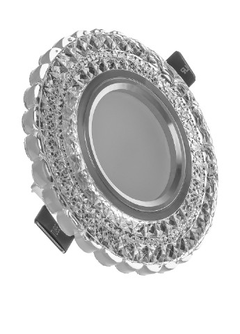 декоративний точковий світильник HDL-G262,3W + LED WH призначений для додаткового підсвічування всього інтер'єру або окремих його складових: меблів, полиць, арок, зон відпочинку або робочих зон. Каркас світильника виготовлений з металу, забарвлений в колір хром. По периметру декорований скляними, прозорими, гранованими камінчиками, які на сонячному світлі або при світлі лампи будуть переливатися кольорами веселки, відтворюючи красиву гру світла. Тильна сторона обладнана металевими «лапками», які забезпечать надійне кріплення точки на горизонтальній або вертикальній поверхні. Додатково світильник обладнаний світлодіодним підсвічуванням. Для роботи необхідно використовувати одну галогенну або світлодіодну лампочку з цоколем GU5.3 потужністю 40 Вт (патрон входить в комплект). Світильник розрахований для роботи від мережі 220 В (трансформатор входить в комплект)
