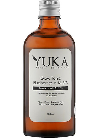 З чого складаються ваші щоденні ритуали краси? Чи достатньо багатий ваш косметичний арсенал? Напевно його необхідно поповнити для досягнення повноцінного ефекту від систематичних б'юті-процедур. На вакантне місце вашого особистого натхненника претендує цей тонік з АНА-кислотами, який, як і будь-який інший засіб від українського бренда Yuka, може похвалитися повністю натуральним складом. Він вигідно вирізняється з-поміж подібних йому засобів, оскільки не лише тонізує шкірний покрив, а й забезпечує додаткове живлення і активізацію внутрішньошкірних процесів. Особливості Yuka Glow Tonic: - в основі продукту гідролат чорниці; - містить АНА-кислоти 3%; - збагачений корисними біологічними речовинами; - послаблює між лусочками рогового шару шкіри; - стимулює відлущування відмерлих клітин; - підвищує тонус шкірного покриву; - дарує відчуття комфорту і доглянутості.