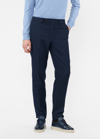 Чоловічі темно-сині брюки Arber selection, з натуральної м'якої тканини на основі вовни, м'яка, фактурна тканина на основі вовни, дозволяє зберегти та утримувати тепло. Модель середньої посадки, звужені до низу, зі стрілками, з двома похилими бічними кишенями та двома задніми прорізними кишенями, із застібкою на блискавку та ґудзик. Прекрасним доповненням до цих штанів може бути піджак із такої самої тканини: M02.33.09.441, в поєднанні з тонким трикотажем.