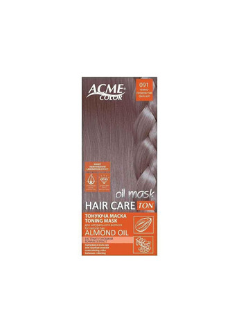 онуюча маска для волосся Acme Color Hair Care Ton oil mask має ефект ламінування, запобігає ламкості, сухості та пошкодженню волосся, захищає від впливу зовнішнього середовища. Натуральні олії, що входять до складу маски, живлять, надають блиск і життєву силу волоссю. Зволожує волосся і шкіру голови, нормалізує рН. Ідеальне доповнення до вашої фарби. Підтримує колір волосся між процедурами фарбування. Застосування: вимити волосся шампунем та просушити рушником на вологе волосся по всій довжині рівномірно нанести маску прочесати волосся гребінцем і залишити на 30 хвилин ретельно змити теплою водою Частота застосування: за потребою. Для стійкості відтінку рекомендується використовувати засоби для догляду за фарбованим волоссям. При роботі із засобом використовуйте рукавички