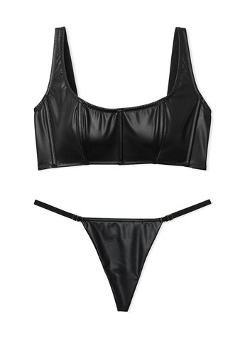 Шикарний комплект білизни з екошкіри Victoria Secret. Топ з м'якої екошкіри. Широкі нерегульовані бретелі. Позаду на зав'язках, з можливістю регулювати. Збоку блискавка. Є вертикальні кісточки. Сітчаста підкладка. Топ без вкладишів. Жіночі трусики стрінги Victoria Secret. Регульовані стрінги з екошкіри. Екошкіра спереду надає пікантного вигляду цим сексуальним трусикам з регульованими бічними бретелями для індивідуального припасування. Є сітчаста підкладка. Бавовняна ластовиця. Низька посадка. Відмінна якість.
