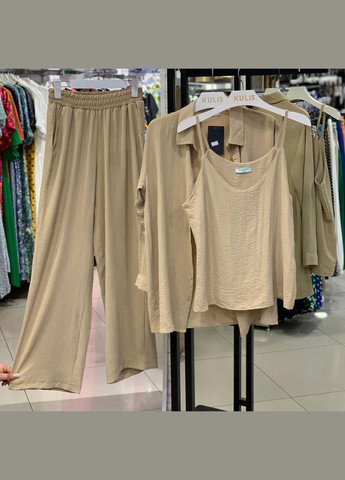 Колір Бежевий / Фасон Трійка / Стиль Кежуал / Візерунок Однотонний / Матеріал Креп