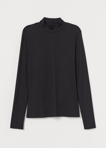 Топ з трикотажу в рубчик. Виріз і мереживо на спині. Низький комір-стійка, довгі рукави.