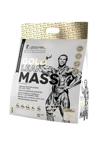 Gold Lean Mass від Kevin Levrone – якісна суха маса, це реально! Ще один гейнер із лінійки відомого атлета. Підбирати калорії та набирати масу ще не було так просто, смачно та продуктивно. Виробник заклав усе потрібне для збалансованого доповнення вашого раціону. У складі використовуються прості вуглеводи у вигляді мальтодестрину для надання енергії та якісний білок - суміш ізоляту та концентрату сироваткового білка. Крім вражаючої кількості білка на порцію ви ще можете зустріти у складі тестобустири на натуральній основі з трибулуса, DAA, а також екстракту пожитника, що просто змусить ваші м'язи не стояти на місці та поступово зростати. Щоб не набрати зайві кілограми виробником було додано CLA та MST, які допоможуть запобігти жировим відкладенням. Склад: Склад на порцію - 200 г (4 мірні ложки): Енергетична цінність 2830 кДж / 676 ккал Жири 12,0 г - насичених з них 3,8 г Вуглеводи 72 г - з них цукру 12,4 г Клітковина 0,02 г Білки 70 г Сіль 0,38 г Антикатаболічна формула Амінокислоти BCAA 12600 мг L-глутамін 9400 мг Β-гідрокси-β-метилбутират кальцію (Ca HMB) 200 мг Ergogenic stack Креатин моногідрат 10000 мг аурин0 D-аспарагінова кислота (DAA) 1000 мг L-орнітин 200 мг Індуктор рівня тестостерону Екстракт пажитника (Trigonella foenum-graecum L.) 1000 мг Екстракт трибулуса террестрису (Tribulus terrestris L.) 1000 мг Fat stack CLA мг Інгредієнти: білковий комплекс (ізолята сироваткового білка (з молока), концентрат сироваткового білка (з молока), гідролізований концентрат сироваткового білка (з молока)), вуглеводний комплекс (мальтодекстрин, глюкоза), моногідрат креатину, порошок CLA, порошкова олія MCT, L-глутамін, какао5, таурин, какао, розчинна кава, D-аспарагінова кислота (DAA), екстракт пажитника (Trigonella foenum-graecum L.), екстракт трибулуса террестрису (Tribulus terrestris L.), β-гідрокси- β-метилбутират кальцію ( Ca HMB), L-аргінін, L-орнітин Склад може змінюватись в залежності від смаку. Як приймати: Змішайте 1 порцію гейнера (200 г) у воді, молоці або соку, регулюючи смак і консистенцію напою. Вживайте залежно від режиму харчування та тренувань. Продукт не замінює, а доповнює звичайний раціон. Попередження: Не використовувати, якщо у вас алергія на будь-яке з'єднання. Не перевищувати рекомендовану добову порцію. Не використовуйте, якщо вагітні або під час лактації. Харчові добавки не повинні використовуватися замість різноманітної та збалансованої дієти. Зберігати у недоступному для дітей місці. Зберігати у сухому та прохолодному місці. Захищати від прямого сонячного проміння.