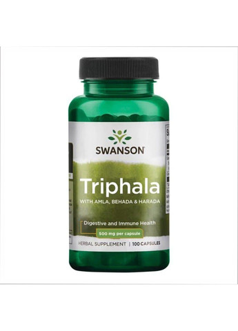Swanson Triphala with Amla, Behada & Harada - це традиційна аюрведична формула, що походить з Індії. Три види фруктів, широко відомі як амла, бехада та харада, допомагають очистити організм, не послаблюючи його. Трифала, безпечна для повсякденного використання, живить, очищає і дійсно омолоджує та забезпечує травну підтримку. Розмір однієї порції - 2 капсули: Трифала (плоди амли [Emblica officinalis], міробалану [Terminalia chebula] та бібхітаки [Terminalia bellerica]) - 1 г Інші інгредієнти: желатин, стеарат магнію. Рекомендації щодо застосування: як дієтична добавка приймати по дві капсули 2–3 рази на день, запиваючи водою. Попередження: Тільки для дорослих. Не використовуйте цей продукт під час вагітності або вигодовування груддю. У разі прийому медичних препаратів або за наявності захворювань перед використанням цього або будь-якого іншого продукту, проконсультуйтеся з лікарем. Зберігати у недоступному для дітей місці. Не використовуйте цей продукт, якщо пошкоджена плівка. Зберігати у прохолодному сухому місці.