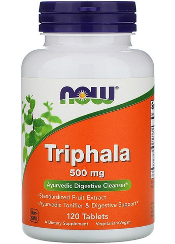Тріфала – це рослинна формула, яка містить у собі корисні мікроелементи трьох плодів. Йдеться про харітакі, амалакі, бібхітакі. Вони містять багато вітамінів та корисних мікроелементів, які сприятливо впливають на ШКТ, роботу мозку, зір та інші органи. Бренд Now Foods розробив харчову добавку Triphala Tablets на основі тріфали. Вона допоможе вам знизити ризики появи сезонних застуд та серйозних захворювань. Продукт підійде як для повсякденного використання, так і для періодів посилених тренувань. Особливості Triphala Tablets від Now Foods: - діє як антиоксидант та захищає від атаки вільних радикалів;- збагачує організм вітаміном С;- покращує травлення і нормалізує метаболізм;- активізує кровообіг;- налагоджує сексуальну функцію;- підвищує концентрацію уваги та розвиває пам'ять;- допомагає вирішити проблему з випаданням волосся;- знижує рівень цукру в крові;- нормалізує роботу кишківника, товстої кишки та мозку;- зміцнює зір та голосові зв'язки;- мінімізує ризики застою рідини, піску та каменів в організмі;- підтримує тонус кишківника та шлунку.