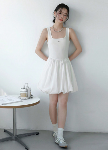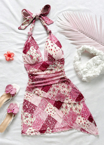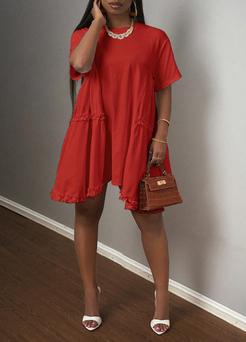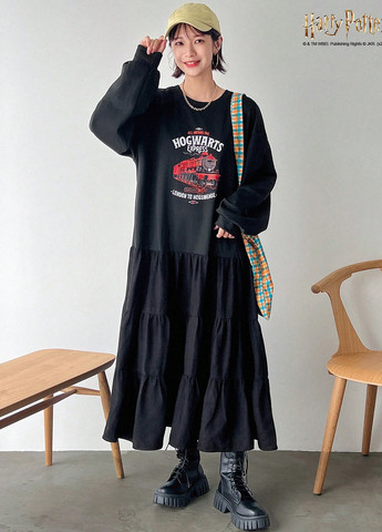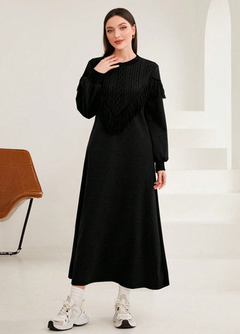 Сукня з довгими рукавами, круглим вирізом та спущеним плечем. Вільний крій, поділ, що розкльошує, і середня лінія талії. Сукня виконана з високоеластичного трикотажного полотна із суміші поліестеру, віскози та еластану. Сукня представлена у фіолетовому кольорі і підходить для носіння восени та взимку. Рекомендації щодо догляду: машинне прання або професійна хімчистка.