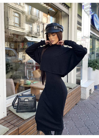 Тепла сукня з високою горловиною стане чудовою базою для модних повсякденних образів. Модель вдало поєднується з будь-яким верхнім одягом та взуттям. Сукня гольф красиво виглядає з класичним взуттям на підборах, а також із чоботями на низькому ходу або масивними черевиками. Вільний крій виробу вдало сідає на фігуру будь-якої комплекції, а довжина міді зорово стрункіша за силует.