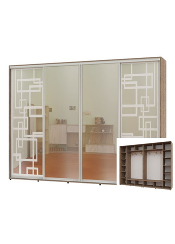 ТОВАР ПІД ЗАМОВЛЕННЯ. ТЕРМІН ВИГОТОВЛЕННЯ 2 ТИЖНІ • Корпус і фасад виробу виготовлений із ламінованого ДСП завтовшки 16 мм. • Крайка зовнішніх деталей 2 мм, полиці, а також ящики 0.5 мм. Алюмінієвий профіль. • Шафи спроєктовані так, щоб забезпечити міцну, безпечну та стійку конструкцію. Компоненти розсувної системи та фурнітура проходять перевірку на міцність і довговічність. • Завдяки універсальній заводській присадці під час встановлення ви можете змінити розташування внутрішнього наповнення — змінити його дзеркально. • Шафа встановлюється на регульовані ніжки, які дають змогу виставити шафу рівно. • У комплекті передбачені стоєві, дах, дно, внутрішнє наповнення (полиці, труби), напрямні, двері та комплект фурнітури. • Шафа відвантажується в розібраному вигляді заводській упаковці.
