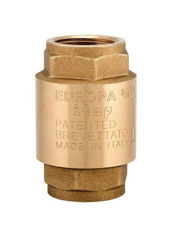 Клапан зворотного ходу води 1 1/4″ EUROPA (100) ITAP з латунним штоком Клапани ITAP серії EUROPA проводяться з латунним штоком Країна виробник - Італія Компанія Itap вже багато років є одним з визнаних міжнародних лідерів з виробництва запірної і запобіжної арматури для систем водопостачання та опалення. Вся продукція компанії виробляється в Італії і відповідає всім європейським і українським стандартам якості. Всі клапана ITAP тестуються на виробництві! Клапан ITAP може бути встановлений в будь-якому положенні: вертикально,горизонтально, похило. Тип з'єднання, різьблення - внутрішня / внутрішня Нормативний термін служби: 20 років. Корпус виробів виготовлений з високоміцної латуні методом гарячого кування, матеріалом служить спеціальна латунь марки CW617N, стійка до високого тиску і від впливу всіляких агресивних компонентів при створенні трубопроводів. Клапан зворотного ходу води ITAP - це якісна, що відповідає європейським нормам італійська запірна арматура, що має великий спектр застосування в промислових і побутових системах, в основному для трубопроводів. Має широкий діапазон діаметрів від 1/2 ″до 4″. Клапан зворотний є одним з видів захисної трубопровідної арматури, яка дозволяє функціонувати системі в нормальних режимах, а іноді і захищати трубопроводи від виникнення нештатних і аварійних ситуацій. Призначення зворотного клапана для води в тому, щоб забезпечити проток води тільки в заданому напрямку і не допустити зміни напрямку на протилежне. Клапан зворотного ходу води Itap застосовується в різних системах (водопостачання, опалення тощо). Характеризується простотою і зручністю монтажу на трубопровід, надійністю і тривалим терміном експлуатації. Призначений для домашнього водопостачання, опалення, установок кондиціонування, систем стисненого повітря. Застосування в побуті: • установка на насосах і насосних станціях • захист від передавлювання в стояках гарячої / холодної води • установка на лінії холодної труби водонагрівачів • поділ контурів в системах автономного опалення На насосах і насосних станціях, зворотний клапан запобігає повернення води назад в свердловину або колодязь. Завдяки його наявності можна отримати воду відразу після включення насоса. Немає необхідності чекати поки вода витіснить повітря з трубопроводу, якщо він вже був одного разу заповнений. Якщо вода забирається з криниці або свердловини, на початку трубопроводу повинна бути сіточка. В іншому випадку, який потрапив камінчик всередину зворотного клапана, зробить систему непрацездатною. Також встановлений після лічильників зворотний клапан, запобігає обертання лічильника в зворотну сторону. Технічні характеристики: А Висота: 83 мм, В - зовнішній діаметр: 60 мм Діаметр різьби першого торця: 1 1/4″ Діаметр різьби другого торця: 1 1/4″ Номінальний прохід - Ду (Dn): 32 мм Номінальний тиск: 25 атм (PN 25) Клас герметичності : А Діапазон температур: від -20 ° С до + 100 ° С. Характеристики (див. Схему): Матеріал корпусу: сантехнічна гарячепресована латунь CW617N Шток - латунний Пружина - нержавіюча сталь AISI 302 Ущільнювальна прокладка - NBR Ущільнювальна прокладка (диск) - нержавіюча сталь Різьблення: ISO228 (еквівалентно DIN EN ISO 228 і BS EN ISO 228) Переваги: Всі клапана ITAP тестуються на виробництві Латунні шток оброблений методом полірування, що позбавляє від прилипання і закипання сторонніх ча