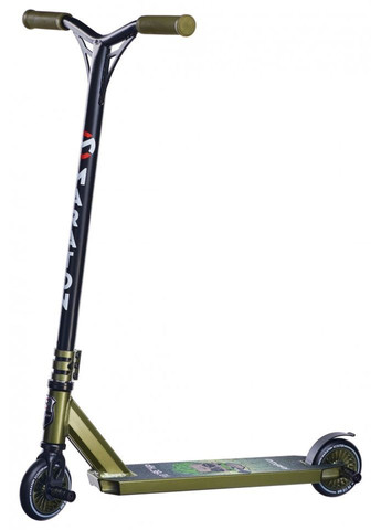 Трюковий самокат Best Scooter — це новинка для досвідчених райдерів! 1. Конструкція максимально спрощена. Система-HIC. Трохи про HIC-систему компресії трюкових самокатів: ця система компресії найбільш використовувана через свою легкість і надійність. До її складу входить сама вилка, спеціальна проставка, болт, хомут і "якір" у внутрішній частині вилки, компресія утримується завдяки болту, вкрученому у "якор" у вилці. Компресія — це деталь, за допомогою якої кермо самоката кріпиться до вилки. 2. Рама цього самоката посилена та виготовлена з алюмінію, а в місцях з'єднання основних елементів видні зварні шви. 3. Колеса моделі, як і належить трюковому самокату, маленькі в діаметрі (всього 10 см) з великою жорсткістю, виготовлені з PU. Диски алюмінієві. 4. Підшипник типу ABEC 7 робить самокат по-справжньому швидкісним і зручним для розгону під час виконання трюків. 5. Досить довга вузька дека покрита спеціальною шкіркою, яка забезпечить краще зчеплення ноги райдера з нею. 6. Накладки на кермо, іншими словами грипси, у цього самоката виготовлені з міцного нековзного матеріалу. 7. Две пеги на осях самоката. Матеріали: Конструкція — 50% високоміцний алюміній, 50% сталь; Колеса - PU (полиуретан); Диски коліс — високоміцний алюміній; Ручки — гума. Розміри: Висота керма: От деки – 82 см, Від підлоги — 87,5 см. Ширина керма — 52,5 см; Дека – 49,5 х 10 см; Корисна довжина деки — 35 см. Діаметр колеса — d = 10 см, ширина — 3 см. Пеги — 5,4 см. Максимальне навантаження: 100 кг.