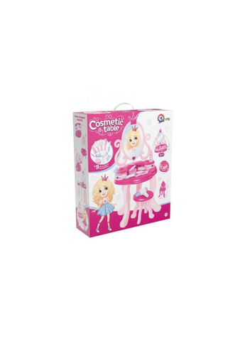 Представляємо Вам косметичний столик для дівчаток - іграшку, яка стане улюбленою забавкою маленької модниці! Цей стильний столик має велике наповнення, яке дозволяє Вашій дитині грати в стиліста або перукаря, робити зачіски та макіяж. В комплекті столика окрім трюмо є гребінець, щітка, дзеркальце, пінцет, заколка-гребінець, плойка, пудрениця, фен, тюбик крему - всього 9 аксесуарів. Перевагою столика є велике дзеркало, розміром: ширина 21,5 см та висота 31 см, яке завдяки якісному безпечному покриттю відображає реалістичне зображення вашої малечі. Ще одним "плюсиком" іграшки є дві невеличкі шухляди, в яких можна розмістити все необхідне, а завдяки розмірам є можливість переносити столик в інше зручне місце після закінчення гри. Столик виконаний з якісної пластмаси без запаху. Косметичний столик від ТехноК - ідеальний подарунок для маленької дівчинки, яка мріє про власний стильний косметичний столик. Він забезпечує не тільки роки веселощів та ігор, але й розвиває творчі здібності Вашої дитини, допомагаючи їй розвивати уяву, створювати власний салон краси та свій імідж.