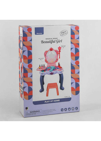 Іграшковий туалетний столик — місце, де маленькі модниці можуть творити справжні дива краси! Цей столик не просто аксесуар, а справжній центр творчості та догляду, який захоплює увагу яскравими світловими і звуковими ефектами. Він створює атмосферу справжнього салону краси, де кожна дитина відчує себе професіоналом. Особливості: Дзеркало з яскравою LED підсвіткою для ідеального освітлення під час гри. Увімкнути/вимкнути підсвітку можна за допомогою сенсорної кнопки, що вбудована у дзеркало; Звукові ефекти: грають різні заспокійливі мелодії, що додають гарної атмосфери під час гри; Столик має ергономічну та міцну конструкцію у привабливому дизайні, що миттєво зачаровує маленьких модниць; В комплекті усе необхідне для цікавої сюжетно-рольової гри по догляду за собою; Помпова подача води: воду потрібно залити у раковину, та після натискання кнопки на крані, вона потече; Дозатор мила, що працює як справжній, додає грі динаміки і веселощів; Нижня поличка для зручності зберігання додаткових елементів; Матеріали міцні, безпечні та приємні на дотик, що гарантує довговічність і комфорт під час гри. Комплектація: Іграшковий туалетний столик з краном та дозатором для мила; Вбудоване дзеркало з підсвіткою; Фен, плойка, розчіска; Аксесуари - обруч для волосся, набір прикрас, помади, різні флакони; Зубні щітки та зубна паста; Рушник. Гра з набором допомагає розвивати уяву, сюжетне мислення, дрібну моторику, гігієну та догляд за собою. Живлення: 3 батарейки типу АА (не входять у комплект). Розмір іграшки: 53 х 29 х 72 см. Рекомендовано для дітей від 3-х років.