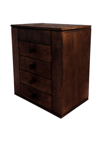 Дерев’яний міні-комод. Маленький комод - це майже така ж важлива приналежність для спальні, як і ліжко. Адже він здатний замінити собою і тумбу, і навіть виконати функцію невеликої шафи, оскільки практичний, місткий і оригінальний. Спідня білизна, коштовності і біжутерія, косметика й особисті дрібниці - все це розмаїття поміститься в такий комод. Розміри зовнішні: висота - 17см, глибина - 18см, ширина - 18см. Матеріал: дерево. Покриття: акриловий лак. Виріб ручної роботи та виготовлений виключно з натуральних, екологічно чистих матеріалів.