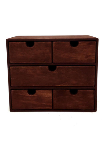 Дерев’яний міні-комод. Маленький комод - це майже така ж важлива приналежність для спальні, як і ліжко. Адже він здатний замінити собою і тумбу, і навіть виконати функцію невеликої шафи, оскільки практичний, місткий і оригінальний. Спідня білизна, коштовності і біжутерія, косметика й особисті дрібниці - все це розмаїття поміститься в такий комод. Розміри зовнішні: висота - 25см, глибина - 22см, ширина - 15см. Матеріал: дерево. Покриття: акриловий лак. Виріб ручної роботи та виготовлений виключно з натуральних, екологічно чистих матеріалів.