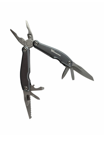 Мультитул 9 в 1 Versa призначений для широкого використання. Цей компактний багатофункціональний інструмент зручно брати з собою в туристичні походи та подорожі. Модель сподобається велотуристам, мисливцям, любителям порибалити. Під одним корпусом зібраний цілий набір необхідних інструментів. Мультитул має сучасний дизайн та ергономічну форму. Габарити виробу дозволяють носити його в кишені. В розкладеному вигляді довжина багатофункціонального інструменту становить 16,5 мм, в складеному – 10,7 см. Комплектація виробу дозволяє виконувати 9 функцій. Під одним корпусом зібрані: плоскогубці-кусачки, ніж стандартний, напилок, ніж маленький, відкривачка для пляшок, консервний ніж, викрутка, пилка. Повнорозмірний мультитул виготовлений з якісної нержавіючої сталі. Матеріал має високу корозійну стійкість, тому інструмент не боїться іржі, міцний та зносостійкий. Мультитул подається в чорному чохлі з щільної тканини. Вага моделі – 215 г.