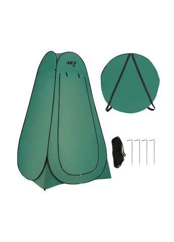 Туристична роздягальня з поліестеру 190Т характеризується водонепроникністю і стійкістю до стирання. На внутрішньому шарі використовується сріблясте ізоляційне покриття, яке забезпечує тепловий комфорт і запобігає нагріванню. Крім того, матеріал повністю непрозорий, тому не просвічується. Конструкція являє собою намет, що саморозкладається, який можна використовувати як літній душ, туалет або туристичне сховище для зберігання речей. Головний вхід і два внутрішніх отвори, які служать бічними і мансардними вікнами, повністю закриваються на блискавку. Верхній простір забезпечує комфортне та легке введення душової кабіни. Роздягальня обладнана внутрішньою кишенею, що дозволяє безпечно зберігати дрібні предмети спорядження. Вбудований ремінець надає можливість повісити одяг або рушник. Конструкція роздягальні дозволяє швидко складати і розкладати. Його компактні розміри означають, що він займає дуже мало місця в упакованому вигляді. На чохлі є ручка, яка дозволяє зручно переносити його. У комплект входить: - підсумок, - 4 кілочки, - 4 х натяжний шнур. Технічні характеристики Колір: Зелений Матеріал: поліестер 190T, ізоляційне покриття Розміри в складеному вигляді: 9 х 60 см Розміри: 120 х 120 х 190 см Вага: 1850 г