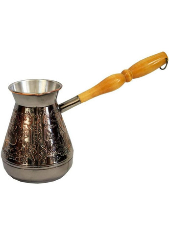 Мідна турка "Фрегат" об'ємом 750 мл — це ідеальний вибір для справжніх цінителів кави, які цінують якість і естетику. Виготовлена з високоякісної міді, ця турка забезпечує рівномірний і правильний прогрів вашого улюбленого напою, що дозволяє розкрити всі його аромати та смакові ноти. Турка виконана з листової міді М1М (М2М) товщиною 1,2 мм, що гарантує довговічність і надійність у використанні. Внутрішні стінки та дно покриті харчовим оловом товщиною 9-12 мкм, що забезпечує захист від зовнішніх впливів і робить процес приготування кави безпечним. А зовнішній шар, виконаний у жаростійкому сріблястому тоні, не лише захищає, але й надає турці стильний і елегантний вигляд. Переваги: Ідеальна теплоємність: мідь забезпечує рівномірний прогрів, що дозволяє готувати каву з насиченим смаком. Зручність використання: дерев'яна ручка з кільцем для підвішування забезпечує комфорт і безпеку під час використання. Універсальність: турка підходить для всіх типів плит — газових, електричних і склокерамічних. Естетика: гравірування "Фрегат" і натуральний блиск роблять цю турку не лише функціональним, але й стильним аксесуаром для кухні. Мідна турка "Фрегат" стане чудовим подарунком для любителів кави, а також для тих, хто цінує якість і стиль у кухонному приладді. Вона ідеально підійде як для домашнього використання, так і для професійних бариста, які прагнуть створити унікальні кавові напої. Не втрачайте можливість насолодитися справжньою кавою, приготованою в мідній турці "Фрегат"! Вона не лише прикрасить вашу кухню, але й стане вірним помічником у створенні ідеального напою.