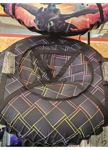 Тюбінг - це надувні санки, призначені для катання з гір, покритих снігом. Виготовлені із міцної тканини ПВХ, яка забезпечує відмінне, м'яке ковзання. Оснащені пластиковими ручками та довгою петелькою, за допомогою якої дитину можна катати, як на звичайних санчатах. Витримує вагу до 100 кг. Діаметр тюбінгу: 100 см.