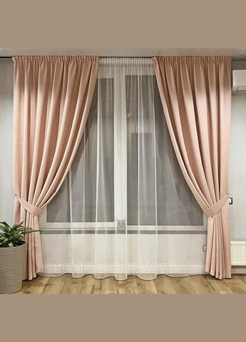Штори Мікровелюр/Diamond, на тасьмі. Тюль Бамбук з фабричним обтяжувачем, на тасьмі. Колір штор Світло-рожевий Колір тюлю Тепло-білий, Ivory, молочний, шампань Розмір: • Ширина штор 280 см. - кожна штора. • Ширина тюлю Вибирається у розмірному ряду. • Висота штор 250 см Висота штор - може бути будь-якою, до 285 см - на вартість не впливає. Якщо висота штор потрібна від 290 см і вище - напишіть потрібний розмір висоти, під час оформлення замовлення. Вам зроблять розрахунок вартості штор, для зазначених у замовленні, розмірів. • Висота тюлю 250 см - однакова зі шторами. За бажанням, висоту тюлю можна зробити менше або більше, ніж у шторах до 320 см - замовляйте потрібну висоту тюлю, під час оформлення замовлення. Перелік розмірів тюлю, до комплекту із 2-х штор, шириною - 280 см, кожна • Штори - 280 см. 2 шт + Тюль 400 см.1 шт • Штори - 280 см. 2 шт + Тюль 450 см.1 шт • Штори - 280 см. 2 шт + Тюль 500 см.1 шт • Штори - 280 см. 2 шт + Тюль 550 см.1 шт • Штори - 280 см. 2 шт + Тюль 600 см.1 шт • Штори - 280 см. 2 шт + Тюль 700 см.1 шт • Штори - 280 см. 2 шт + Тюль 750 см.1 шт Пропоновані комплекти, для замовлення, з можливістю вибору різного розміру ширини тюлю у комплекті, допоможуть Вам обрати - найбільш підходящий комплект штор. Обрати необхідний розмір ширини тюлю у комплекті зі шторами, Ви можете у розмірному ряду, який розташований біля кнопки - купити. Характеристика матеріалу для штор Тканина - Мікровелюр/Diamond - м'яка на дотик, має не велику ворсистість, не важка, має середню щільність переплетення волокон (ниток), це дає змогу, формувати легкі та густі склади (фалди), у виробах. Тканина має високу зносостійкість, після прання (см. "Рекомендації з догляду") зберігає первинний вигляд, не деформується, не змінює колір. Виробник тканини Туреччина Висота тканини у рулоні 300 cm Склад 100 % ПЕ Вага/щільність 675 г/м Призначення тканина для штор, покривал, чохлів, декор. наволочок на подушки. Застосування штори завширшки 280 см × 2 шт., підходять на карниз завширшки від 250 см до 380 см. Якщо штори будуть використовуватися як декоративні, тобто вони не будуть рухатися по карнизу, для повного закриття вікна, карниз може бути будь-якої ширини. М'які фалди, що утворюються під час стягування тесми, досить добре закривають сонячне світло в денну пору. У вечірню та нічну пору, коли увімкнене освітлення, закривають вікно з вулиці від -50% до -70%. Штори з Мікровелюру/Diamond добре підійдуть для будь-якого типу приміщень, квартири, будинку, кімнати... Характеристика матеріалу для тюлю Тканина - Бамбук із фабричним обтяжувачем - це дихаюча тканина не створює парникового ефекту, добре пропускає через себе повітря. Має сітчату фактуру з прожилками, тонка, але дуже міцна, відноситься до серії тканин Антикіготь. Повітряна, легка, матова (без блиску), утворює дуже м'яко спадаючі фалди (склади). За рахунок сітчатої фактури, рівномірно розсіює сонячне світло в приміщенні, перешкоджає вигоранню, від сонячних променів, предметів інтер'єру. Тканина має високу зносостійкість, витримує понад 50 прань, водночас не втрачаючи своєї якості, після прання не деформується, не втрачає колір. Виробник тканини Туреччина Висота тканини у рулоні 330 см Склад 100% ПЕ Призначення тканина застосовується для декорації вікон і рівномірного розсіювання сонячних променів у приміщенні, у денну пору. Гарно задекорує вікно в будь-яких приміщеннях. Застосування може декорувати вікно в комплекті зі 
