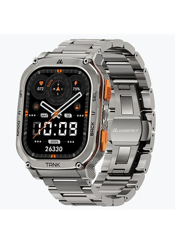 Надійність, перевірена екстремальними умовами Смартгодинник KOSPET TANK X2 ULTRA пройшов 15 військових тестів за стандартом MIL-STD-810H, що дає змогу використовувати його в найсуворіших умовах. Він стійкий до ударів, пилу, вологи, перепадів температур і тиску, тому стане надійним супутником у спорті, подорожах та щоденній активності. Навігація без компромісів Двосмугова система супутникового позиціонування з підтримкою 6 типів супутників забезпечує точне визначення місця розташування навіть у складних умовах. Вбудований компас і барометричний альтиметр дають змогу орієнтуватися на місцевості та контролювати висоту — це особливо корисно для туристів, мандрівників і любителів гірських походів. Міцний корпус і яскравий AMOLED-дисплей Модель має монолітний корпус із нержавіючої сталі, виконаний у глибокому чорному кольорі, що поєднує витривалість і стриманий стиль. AMOLED-дисплей діагоналлю 1.64" з роздільною здатністю 456×280 забезпечує насичене зображення з чудовою читабельністю навіть під прямим сонячним світлом. Завдяки розмірам 52×34×14 мм і масі 75 г годинник зручно сидить на зап’ясті та не створює дискомфорту під час тривалого носіння. Спортивні функції для будь-якої активності KOSPET TANK X2 ULTRA Black підтримує понад 170 спортивних режимів, включно з тестом SWOLF для оцінки ефективності плавання. Це дає змогу глибше аналізувати тренування та досягати кращих результатів. Годинник також оснащений датчиками для моніторингу серцевого ритму, рівня кисню в крові, сну та стресу — усе для комплексного контролю вашого самопочуття. Захист, що відповідає професійним стандартам Сертифікація 5 ATM та IP69K гарантує водонепроникність навіть під час занурення. Годинник можна використовувати для плавання, водних видів спорту або в умовах сильного дощу. Такий рівень захисту дає змогу не хвилюватися про збереження пристрою в екстремальних ситуаціях. Інтелектуальні функції та автономність Процесор ATS3085L, 256 МБ NOR-пам’яті та підтримка Bluetooth-з’єднання забезпечують стабільну роботу та синхронізацію зі смартфоном. Ви можете отримувати сповіщення, керувати музикою, відповідати на дзвінки та користуватися застосунками без зайвих рухів. Акумулятор ємністю 290 мА·год забезпечує тривалий час автономної роботи — до кількох днів без підзарядки, залежно від режиму використання. Застосунки для годинників KOSPET Користувачі KOSPET можуть обрати один з двох варіантів робочого застосунку: класичний KOSPET FIT (Google Play або Apple Store), або новий — Apexmove (Google Play або Apple Store). *Характеристики та комплектація товару можуть змінюватися виробником без повідомлення. Магазин не несе відповідальність за зміни, внесені виробником.