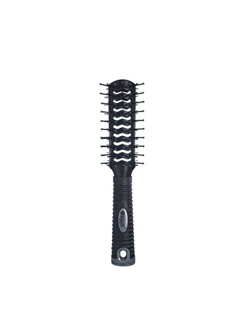 Щітка для укладання та об'єму волосся Salon Professional двостороння овальна Двостороння щітка завдовжки 22 см із пластиковими зубцями - ідеальний інструмент для створення об'єму й акуратного укладання волосся. Завдяки продуманій конструкції вона об'єднує відразу два варіанти зубців: довгі пластикові зубці легко проходять крізь густе або хвилясте волосся, піднімаючи його біля коріння і додаючи об'єм; короткі зубці допомагають пригладити пасма і надати зачісці завершеного вигляду. Рифлена прогумована ручка не ковзає в руці, забезпечуючи комфорт під час використання. Для зручного зберігання передбачена петелька для підвішування. Отвори в основі щітки прискорюють сушіння волосся феном. Ця щітка стане незамінною в щоденному догляді під час створення стильних укладок.