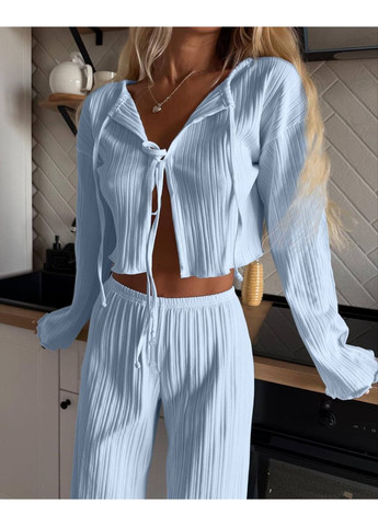 Цей жіночий костюм зі шовку — уособлення сучасної жіночності з ноткою витонченої легкості. Його основою є вкорочена сорочка прямого крою, яка закінчується на рівні талії, делікатно відкриваючи лінію живота. Виготовлена з м’якого, гладкого шовку, вона м’яко огортає тіло, даруючи приємні тактильні відчуття та комфорт навіть у спекотну погоду. Довгі рукави оздоблені вузькими манжетами на ґудзиках, що додає образу завершеності та легкої строгості. Відкладний комір підкреслює класичний стиль виробу, надаючи йому елегантного звучання, водночас балансуючи між офіційністю й невимушеністю.