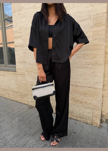 Тканина креп-жатка має приємну текстуру з легким рельєфом, не просвічується, чудово тримає форму та практично не зминається, що робить штани ідеальними для повсякденного носіння й подорожей. Цікавий принт додає образу індивідуальності й динаміки — він може варіюватися від абстракції до етномотивів або флористики, залежно від стилю. Ця модель стане яскравим акцентом у літньому гардеробі та пасуватиме як для прогулянок, так і для неформальних подій, коли хочеться виглядати стильно та невимушено.