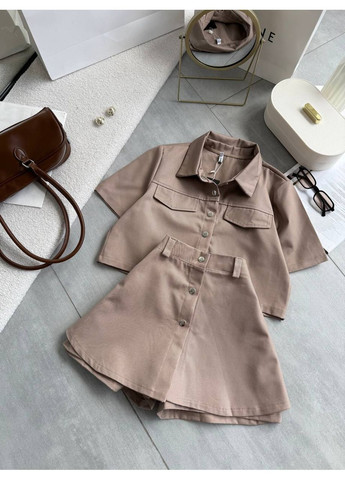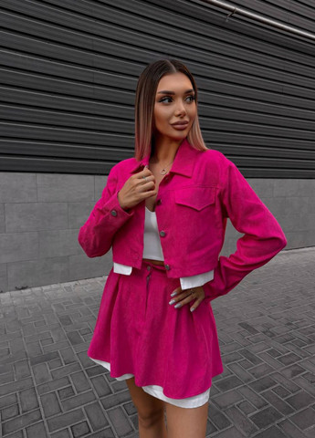 Тканина екошкіра м’яка та пластична, приємна на дотик, з ефектом натуральної шкіри, але більш легкою вагою та комфортною у носінні. Вона стійка до зношування та легко очищується, що робить костюм практичним для повсякденного використання й вечірніх виходів.