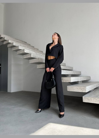 Стильний жіночий костюм з високоякісної екошкіри, який поєднує в собі елегантність і сучасний характер.