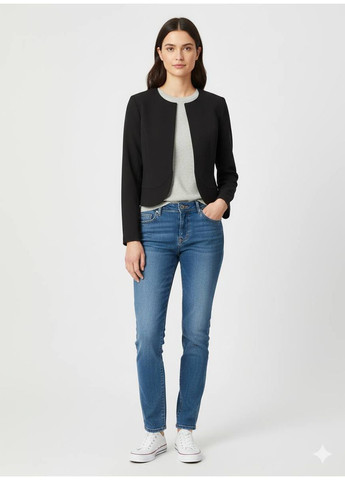 Приталений укорочений жіночий жакет з відкладним коміром надасть образу елегантності та вишуканості. Має зручні бічні кишені із клапанами. Відмінно підійде до ділового та повсякденного стилю. Піджак вигідно виглядає у поєднанні як зі спідницями, так і зі брюками. Виконаний із практичної тканини, яка подарує почуття комфорту. Добре поєднується з мокасинами та підборами. Підходить для роботи в офісі, прогулянках, романтичних зустрічах.