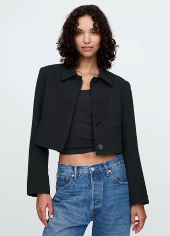 Приталений укорочений жіночий жакет з відкладним коміром надасть образу елегантності та вишуканості. Має зручні бічні кишені із клапанами. Відмінно підійде до ділового та повсякденного стилю. Піджак вигідно виглядає у поєднанні як зі спідницями, так і зі брюками. Виконаний із практичної тканини, яка подарує почуття комфорту. Добре поєднується з мокасинами та підборами. Підходить для роботи в офісі, прогулянках, романтичних зустрічах.