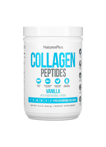 Колагенові пептиди Natures Plus VANILLA - це потужна харчова добавка, створена для підтримки краси та здоров'я вашої шкіри, волосся, нігтів та суглобів. Містить 364 г високоякісних колагенових пептидів з натуральним смаком ванілі, що робить його не тільки корисним, а й приємним у використанні. Ці колагенові пептиди одержують із ретельно відібраних джерел: яловичини, вирощеної на траві, дикої риби та мембрани яєчної шкаралупи. Це гарантує, що ви отримуєте чисті та стабільні інгредієнти без додавання ГМО та глютену. Сертифікований завод GMP забезпечує високі стандарти якості, що робить цей продукт надійним вибором для тих, хто піклується про своє здоров'я. Переваги колагенових пептидів Natures Plus: Багатофункціональність: підтримка здоров'я шкіри, волосся, нігтів та суглобів. Широкий спектр типів колагену (I, II, III, IV, V, X) для комплексного впливу на організм. Максимальне засвоєння завдяки гідролізованим пептидам, які легко перетравлюються. Чистий смак ванілі, який легко додавати до напоїв та страв. Відсутність синтетичних барвників та консервантів, що робить продукт безпечним для регулярного використання. Колагенові пептиди Natures Plus призначені для всіх, хто хоче покращити свій загальний стан здоров'я та зовнішній вигляд. Це ідеальний вибір для: Люди, які прагнуть підтримки молодості та пружності шкіри. Тих, хто хоче зміцнити волосся та нігті. Спортсменів та активних людей, які дбають про здоров'я суглобів. Всіх, хто прагне покращення здоров'я кишечника та імунної системи. Рекомендації щодо застосування: додайте 26 г (2 мірні ложки) порошку в 8 унцій води або соку. Продукт швидко поєднується і не вимагає використання блендера, що робить його зручним для повсякденного використання. Використовуйте колагенові пептиди Natures Plus VANILLA, щоб виглядати і почуватися краще кожного дня. Дбайте про своє здоров'я за допомогою чистих та ефективних інгредієнтів!