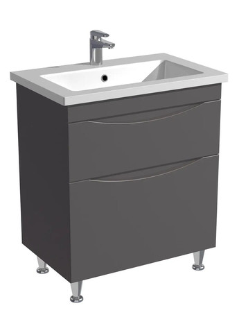 Тумба комплектується умивальником зі штучного каменю Космо 70 та входить у вартість, вказану на сайті! Форма тумби: пряма; Тип установки: Підлогова; Форма фасаду: пряма; Висувна скринька, шт: 2; Основний колір: Графіт; Стан: Новий; Корпус: ДСП вкрита фарбою; Фасади: МДФ фарбований; Ніжки: сталь; Вологостійкість: Так; Повне висування ящика: Так; Оснащення напрямних доводжувачами: Так; Можливість регулювання полиць за висотою: Ні; Кількість ніжок, шт: 4; Довжина, мм: 656; Глибина, мм: 428; Висота, мм: 695; Ширина раковини: 70 см.