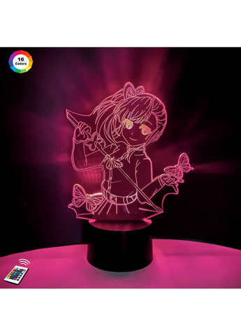 3D нічник хаджіме Іваїзумі (ЗБІЛЬШЕНИЙ ЗОБРАЖЕННЯ) подарункова упаковка + 16 кольорів + пульт ДУ + мережевий адаптер + батарейки (3ААА) Колір світіння змінюється натисканням на кнопку на корпусі, а також за допомогою пульта дистанційного керування. Є режим автоматичного переключення кольорів та можливість регулювати яскравість підсвічування нічника. Безпека. Світильник не нагрівається, не має запаху. Робота від батарейок та мережі. 3D світильник хаджіме Іваїзумі може працювати від мережі, комп'ютера або power-банка, а так само від батарейок (мікропальчикові 3 шт) ІДУТЬ У КОМПЛЕКТІ. Керування за допомогою пульта: Направте пульт у бік бази. Натисніть ON для увімкнення, OFF для вимикання лампи. Яскравість свічення регулюється за допомогою кнопок зі стрілками вгору/вниз. Щоб вибрати колір свічення, натисніть кнопку відповідного кольору. FLASH зміна кольору по порядку. STROBE зміна кольору у випадковому порядку. FADE кольори змінюються із ефектом згасання. SMOOTH плавна зміна кольору. Вам сподобалося кілька дизайнів 3D нічників і не знаєте який вибрати? Чи можливо вашій дитині сподобався інший мультяшний герой або Ви змінили інтер'єр у вашому приміщенні? Не обов'язково купувати новий нічник! Унікальною особливістю 3D нічників є те, що зображення в ньому знімні. Досить замовити у нас додаткове зображення - і у Вас новий 3D нічник! характеристики: Колір світла: 16 кольорів світіння Матеріал: акрил, пластик Розмір: 22,5 х16см Потужність: 5 Вт Комплектація: подарункова упаковка, корпус, акрилова пластина (ЗБІЛЬШЕНИЙ ЗОБРАЖЕННЯ), пульт ДУ, USB-кабель 1.5 м, мережевий адаптер ),інструкція українською мовою Гарантія:12 місяців Ресурс лампи: до 50 000 годин роботи МАТЕРІАЛИ НЕ МІСТЬ ШКІДЛИВИХ РЕЧОВИН! НЕ НАГРІВАЄТЬСЯ! БЕЗПЕКА ДЛЯ ДІТЕЙ! Вся продукція торгової марки 3DTOYSLAMP пройшла ретельну перевірку на якість!