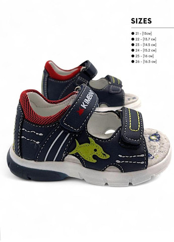 Дитячі сандалії для хлопчика Kimbo-o – зручність, якість і стиль для активного літа. Шукаєте ідеальне літнє взуття для свого малюка? Сандалії Kimbo-o для хлопчика — чудове поєднання комфорту, безпеки та сучасного дизайну. Відкритий носок забезпечує вентиляцію у спекотну погоду, а зручна шкіряна устілка з супінатором підтримує правильне формування дитячої стопи. Верх виготовлений із якісної екошкіри, що м’яко облягає ніжку та не викликає подразнень. ПВХ-підошва легка, гнучка та не ковзає, що дозволяє дитині впевнено рухатись під час прогулянок або ігор. Розмірна сітка: 21р. устілка 13.0 см; 22р. устілка 13.7 см; 23р. устілка 14.5 см; 24р. устілка 15.2 см; 25р. устілка 16.0 см; 26р. устілка 16.5 см.