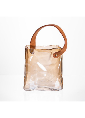 Ця стильна ваза з димчастого скла стане виразним акцентом у будь-якому інтер'єрі. Її унікальна форма з нерівною фактурою надає виробу сучасного та трохи арт-хаусного характеру. Додатковий штрих - шкіряна ручка теплого коричневого відтінку, яка не тільки прикрашає вазу, але робить її зручною для перенесення. Основні характеристики скляної вази-сумочки для квітів: Матеріал: скло, штучна шкіра; Розмір: 13×7×16.5 см; Глибина: 15 см; Об'єм: 1 л. Переваги декоративної вази з ручкою: Ваза підходить для різних типів кольорів, а також для сухоцвітів; Ваза виготовлена з високоякісного скла, що гарантує її міцність та довговічність; Підходить для сучасних, мінімалістичних та скандинавських інтер'єрів Ця ваза легко впишеться у вітальню, спальню чи офіс, підкреслить індивідуальність простору та стане оригінальним подарунком для поціновувачів стильних аксесуарів.