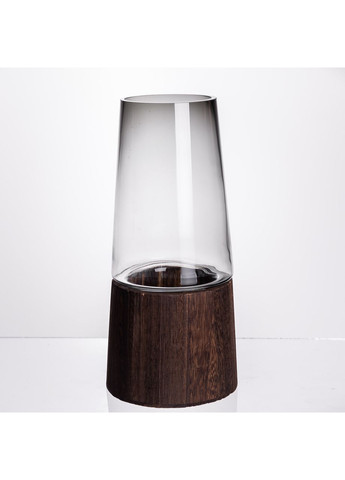 Елегантна ваза з дерева та скла стане стильним акцентом у сучасному інтер'єрі. Прозоре димчасте скло у поєднанні з текстурою дерева створює гармонію затишку та вишуканості. Такий аксесуар підкреслить красу мінімалістичних, скандинавських чи рустикальних просторів, надаючи їм характеру і завершеності. Ця ваза - не просто посудина, а повноцінний декоративний елемент, який пожвавить вітальню, передпокій або робочий простір. Вона також стане вдалим вибором для подарунка або стильної фотозйомки інтер'єру. Основні характеристики вази для квітів: Матеріал: скло; Діаметр: 13 см; Висота: 29 см; Глибина: 27.5 см; Верхній діаметр: 9 см; Нижній діаметр: 13 см; Об'єм: 2 л. Основні переваги декоративної вази: Ваза підходить для різних типів кольорів, а також для сухоцвітів; Ваза виготовлена з високоякісного скла, що гарантує її міцність та довговічність; Універсальність дизайну дозволяє вазі гармонійно вписатись у будь-який інтер'єр. Така ваза підходить для живих чи штучних кольорів, а також для декоративного прикраси простору. Її легко інтегрувати у сучасний чи класичний інтер'єр. Проста у догляді – достатньо мити вручну або в посудомийній машині.