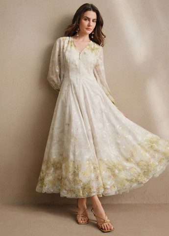 Матеріал Поліестер / Колір Молочний / Фасон Кльош / Довжина виробу Максі / Стиль Святковий, Кежуал