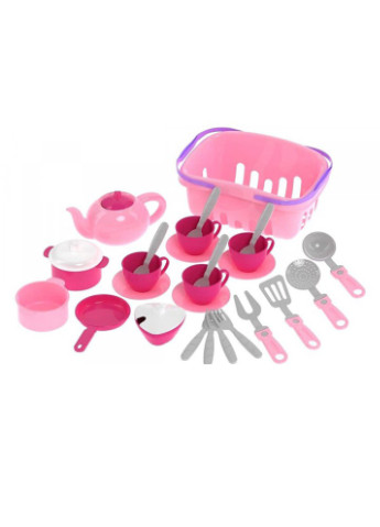 У наборі є все необхідне для приготування смачних страв та зустрічі гостей. Дві каструльки та сковорідка для втілення різноманітних кулінарних задумів. Шумівка, черпак та лопатка зроблять процес приготування максимально реалістичним. А щоб порадувати гостей ароматним чаєм - чайник з кришкою, цукорниця, ложечки та чашки на блюдечках. Всі іграшки розміщуються в кошику з двома ручками. Всі елементи набору виготовлені з якісного міцного пластику, безпечного для дітей. У наборі: кошик, 2 каструлі, кришка, сковорідка, лопатка, велика вилка, черпак, шумівка, цукорниця з кришкою, чайник з кришкою, 4 вилки, 4 чашки з блюдечками та ложечками. Упаковка: 13 х 19 х 27 см Вік: 3+ Виробник: Україна
