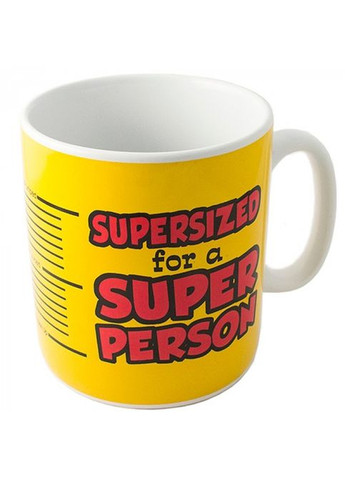 Чашка гігант 850 мл - це напрочуд велика чашка, яка дозволяє насолоджуватися вашими улюбленими напоями в екстраординарному стилі. З цією чашкою ви можете додати порцію веселощів та відчути себе справжнім супергероєм. Чудово виконана чашка має яскравий жовтий колір, який одразу привертає увагу. Вона додасть яскравості та радості у ваше повсякденне життя, зробивши ваші ранкові ритуали або чаювання з друзями ще приємнішими. Чашка гігант має місткість 850 мл, що значно більше за звичайні стандартні чашки. Ви зможете насолодитися великим обсягом свого улюбленого гарячого напою, будь то кава, чай чи какао. Крім того, її гігантський розмір робить її ідеальним рішенням для вечірок або сімейних зборів, де кожен зможе налити додатковий кубок. На цій чашці гігант ви знайдете веселий і мотивуючий напис "Supersized for SUPER PERSON" ("Величезний для СУПЕР Особи"), який нагадає вам про вашу унікальність і здатність впоратися з будь-якими викликами, з якими ви стикаєтеся. Це не просто чашка - це символ вашої сили та сили. Ваша нова чашка поставляється в елегантній подарунковій коробці, що робить її ідеальним подарунком для ваших близьких та друзів. Ви зможете порадувати їх унікальним та функціональним подарунком, який нагадуватиме їм про вашу турботу та увагу щоразу, коли вони будуть насолоджуватися своїми напоями. Зробіть свій вибір на користь чашки гігант 850 мл з написом Supersized for SUPER PERSON і додайте трохи веселощів та натхнення у своє життя.